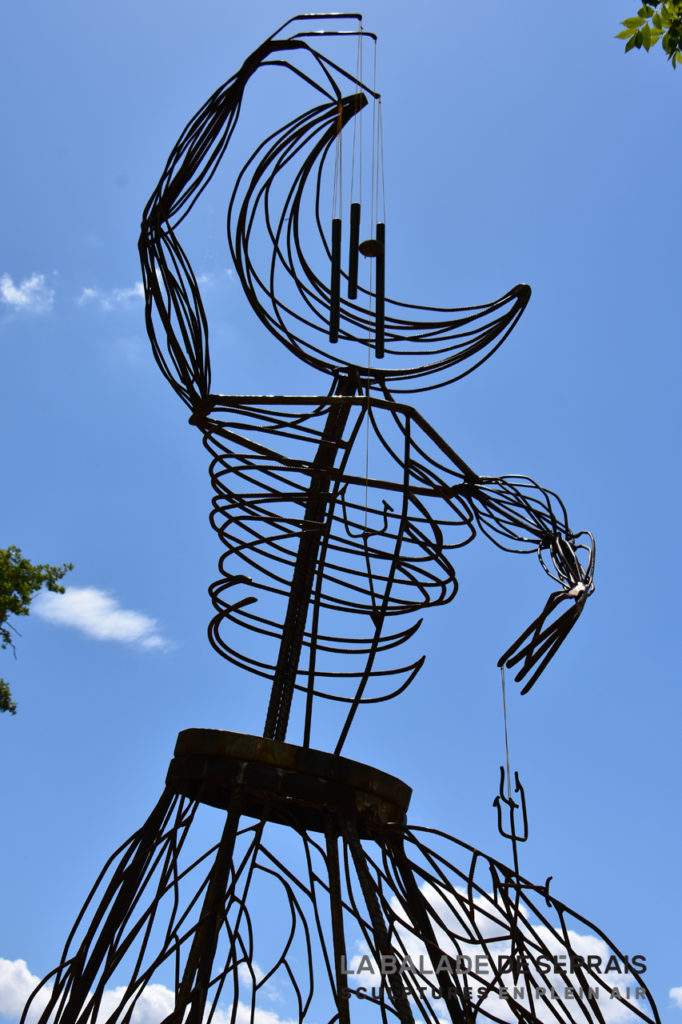 L’artiste jurassienne Carole Joos, avec son projet « Madame Lune », a reçu une carte blanche pour la réalisation d’une première œuvre monumentale dans l’espace public. Elle figure dans la droite ligne des nombreuses sculptures en métal issues de matériaux de récupération présentes sur la Balade. L’œuvre explore les thèmes du ciel, de la terre, de la féminité et de la musique. L’artiste, dont le langage onirique est à la croisée des chemins de l’art brut, du surréalisme et du symbolisme, apporte sa touche de poésie à un endroit du parcours qui n’avait pas vu de nouvelles sculptures depuis plus de 10 ans…