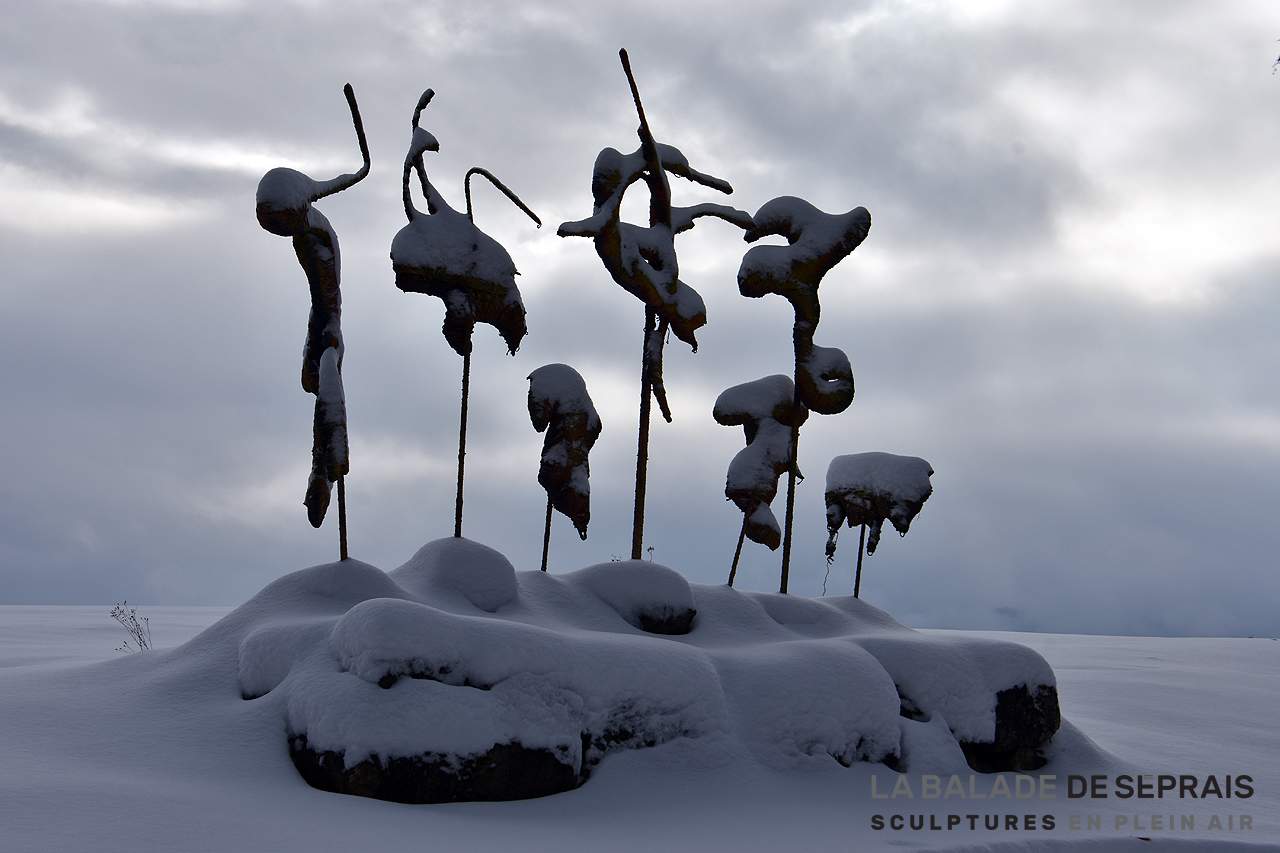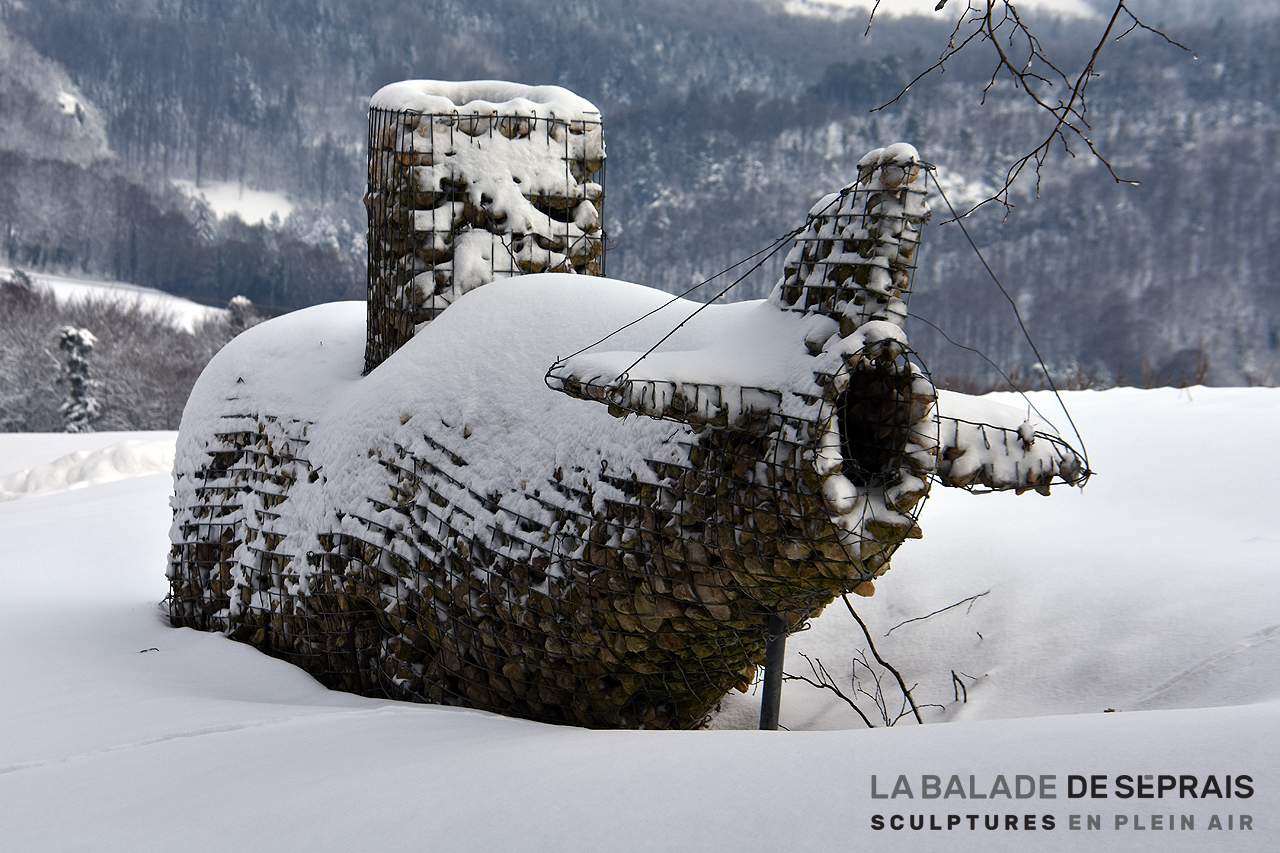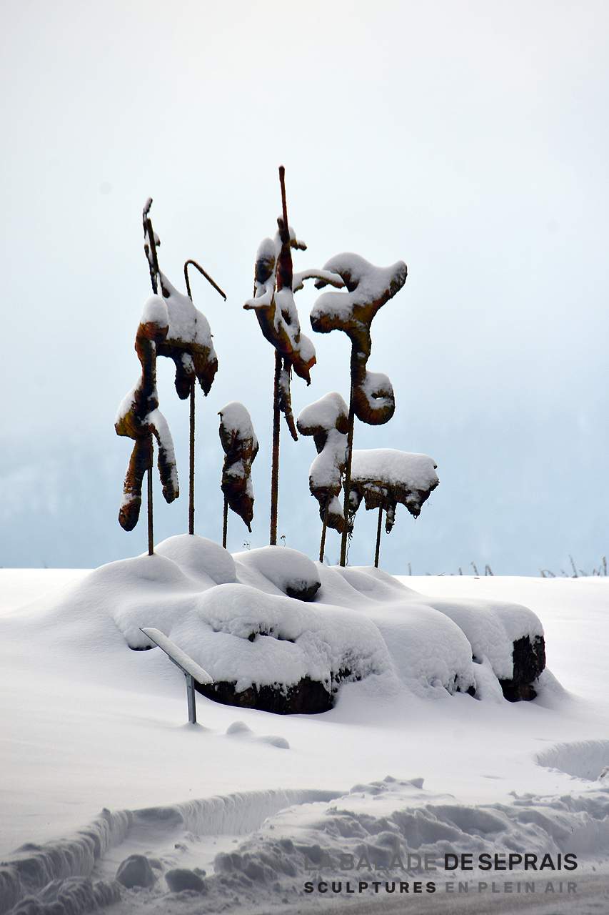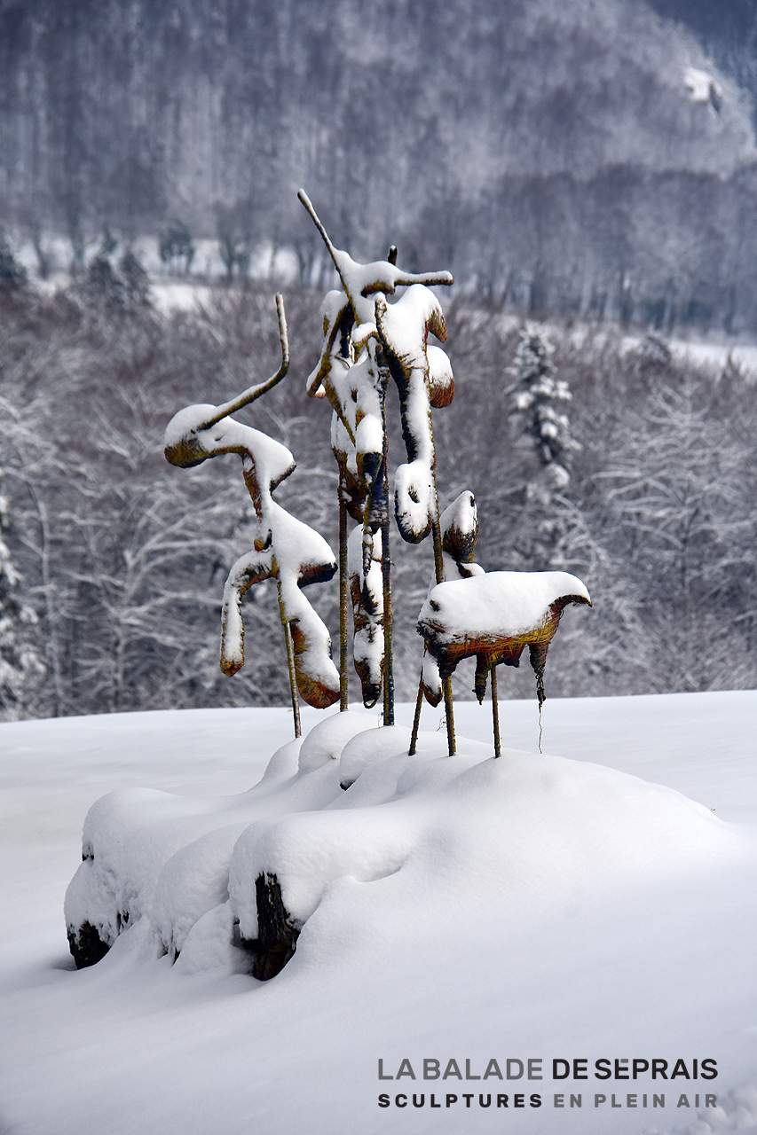 La Balade de Séprais, un véritable jeu de piste… La neige a caché le nom de toutes les oeuvres… Saurez-vous les identifier facilement ?