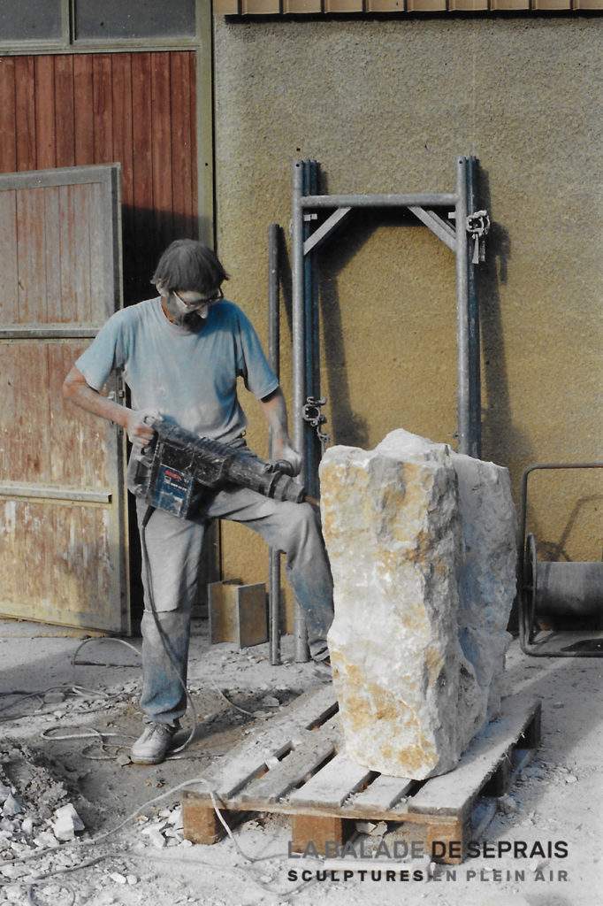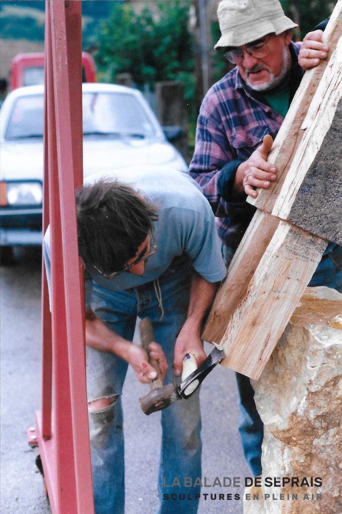 C’est la première sculpture mobile créée sur le parcours de la Balade, les passants devaient l’actionner pour qu’elle sonne le salut de Séprais. Ainsi, de manière interactive, l’artiste nous rendait complice de la transformation de la réalité… Cette oeuvre n’existe plus.